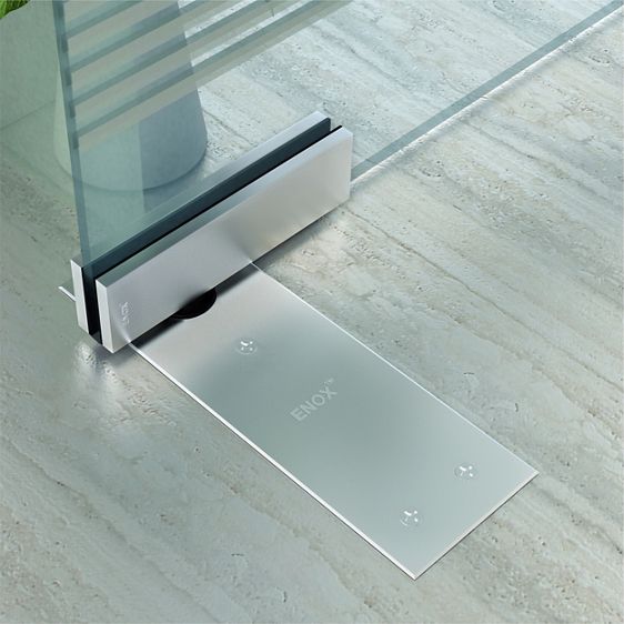 A key advantage of a spring floor system is that it remains completely hidden within the floor, giving your space a clean, modern appearance. ENOX’s sleek finishes, Satin Stainless Steel and Matte Black, add a touch of sophistication to glass and wooden doors alike.