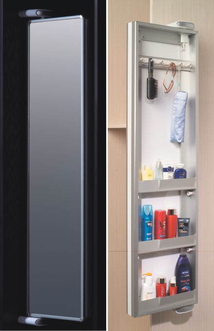 - Rotating mirror provides perfect space for storage.