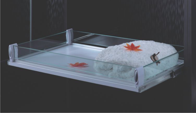 - Part extension pull-out single glass wardrobe storage basket with ball bearing slides for multi-purpose use.
