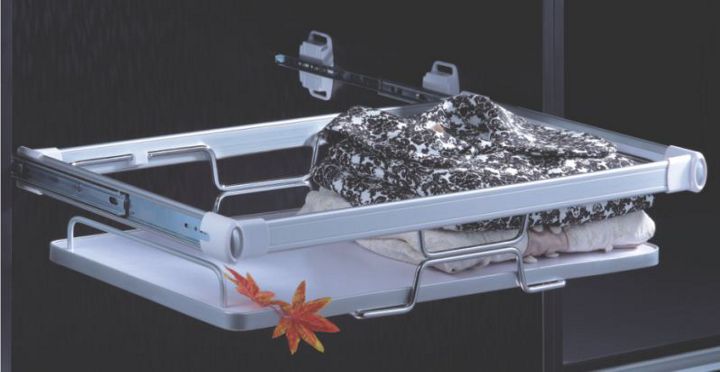 - Part extension pull-out single glass wardrobe storage basket with ball bearing slides for multi-purpose use.