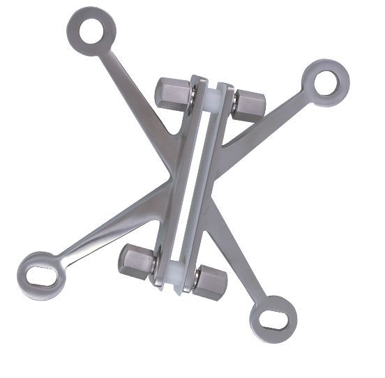 4 Way Spider fitting for flush glazing to suit 2 or 4 glass panel assembly with fin
